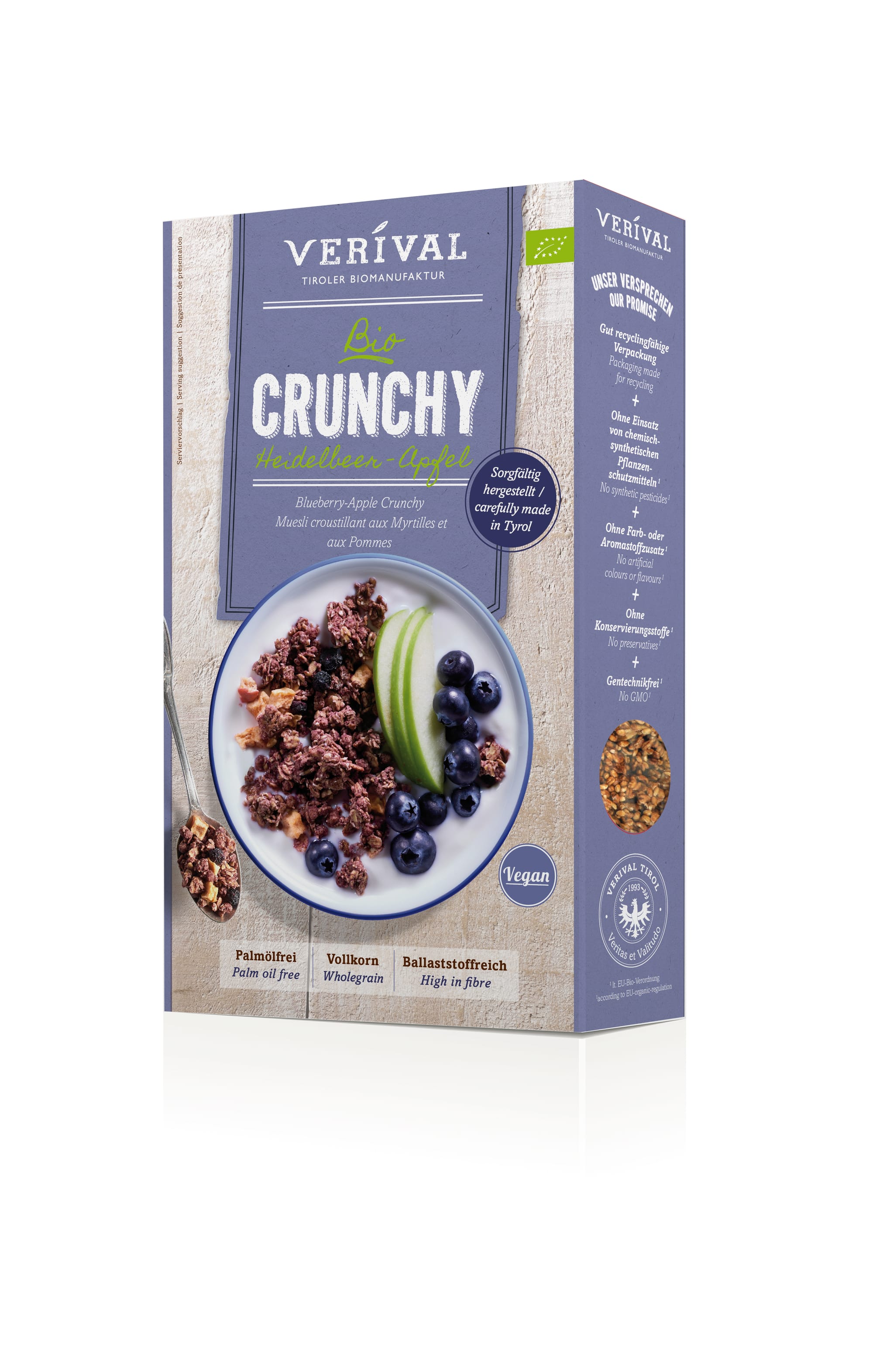 carefully made in Tyrol Crunchy clusters of oats and barley, mixed with blueberries and diced apple and toasted with sunflower oil and carefully made in the Austrian Tyrol .Deliciously biscuit and purely organic .Good morning!