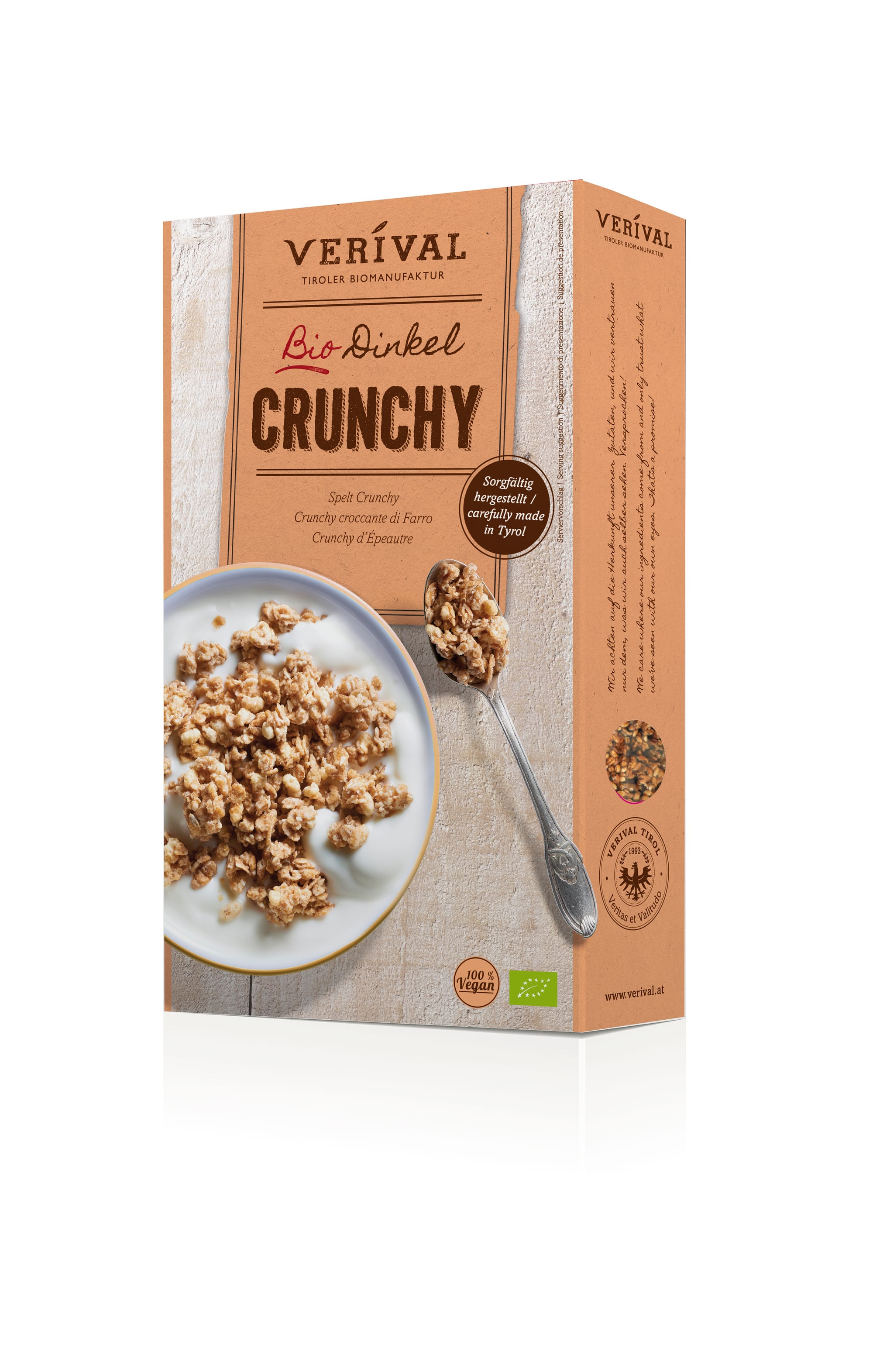 Crunchy clusters of spelt and crisped rice , toasted with sunflower oil and carefully made in the Austrian Tyrol. Deliciously biscuit and purely organic . Good morning